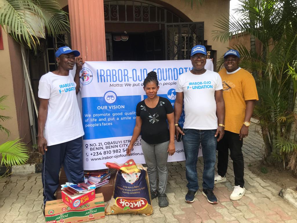 Irabor-Ojo Foundation donates food and school materials to Edo Orphanage Home, Benin City, Edo State on 01/04/2023.